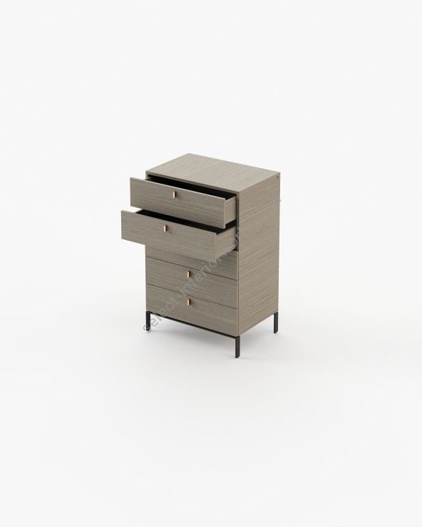 The Amber tallboy is a clean-lined and rectangular piece that brings a streamlined style to any bedroom. It features a neutral finish, steel accents, and a wooden structure that make it versatile and decorative.