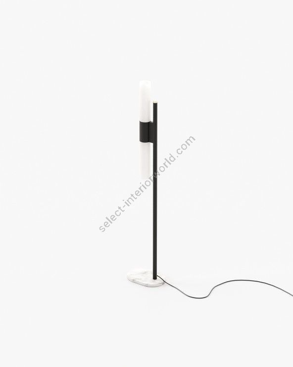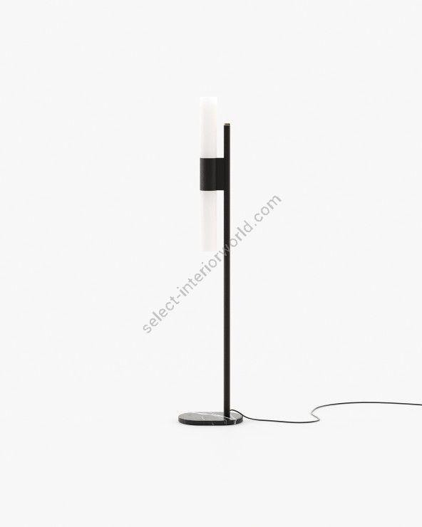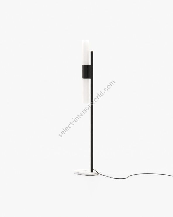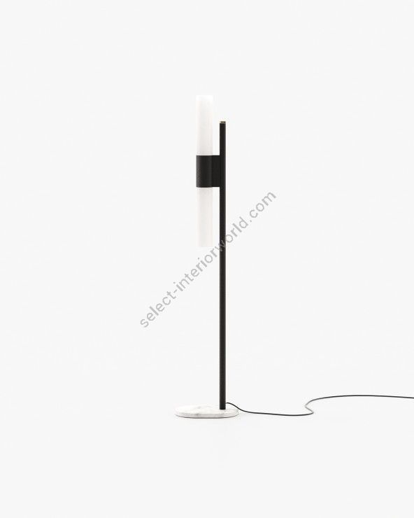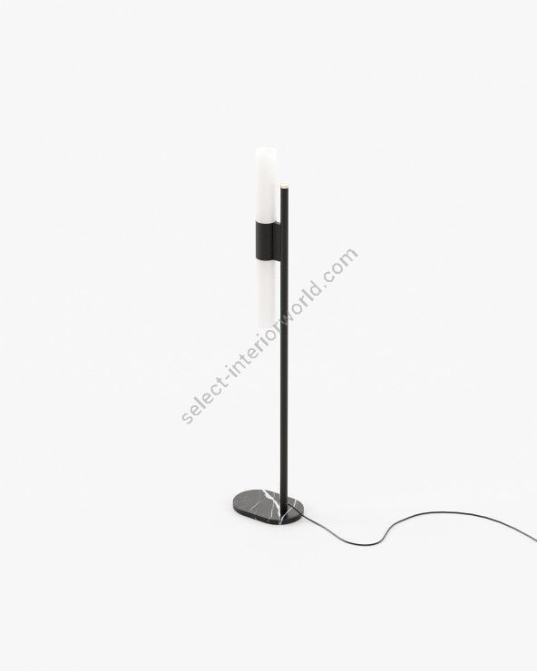 The Evans floor lamp is a minimal, stylish addition to a contemporary living room, bedroom, or hallway. It features a streamlined design with a low, marble base and an iron or steel structure, making it a great lighting addition to your design project.