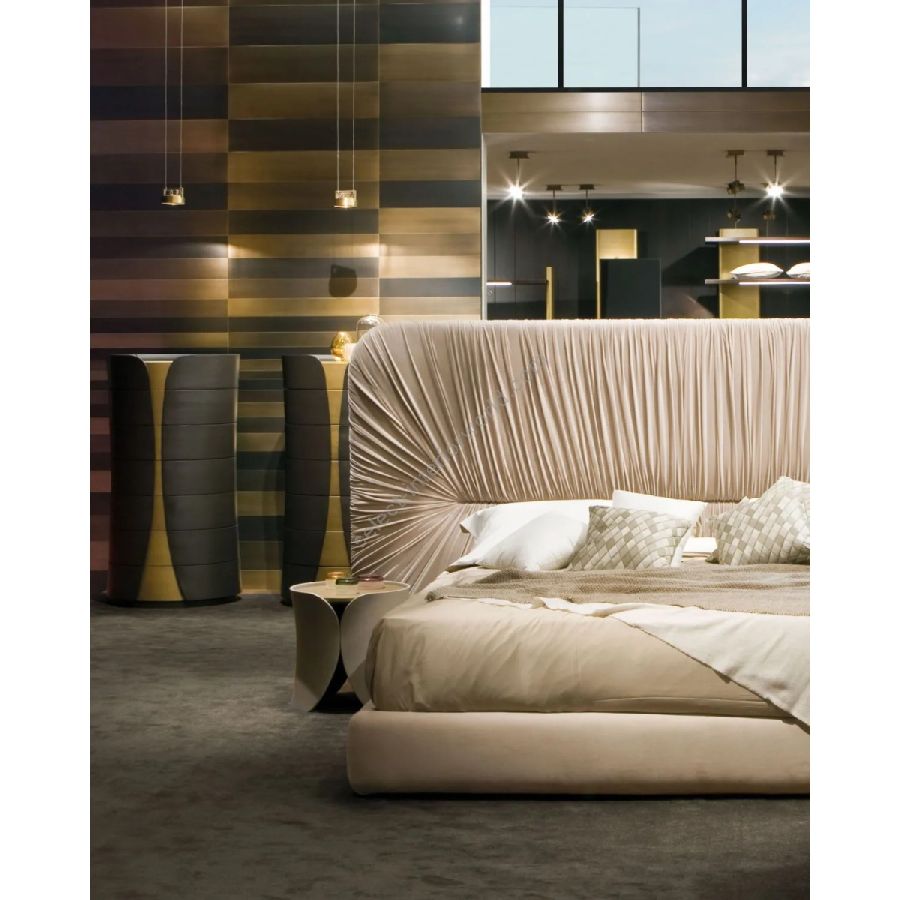 Double bed with padded headboard covered with in a soft drapery made in leather, matt 'Lario' or shiny 'Roxana' velvet, or in fabric.