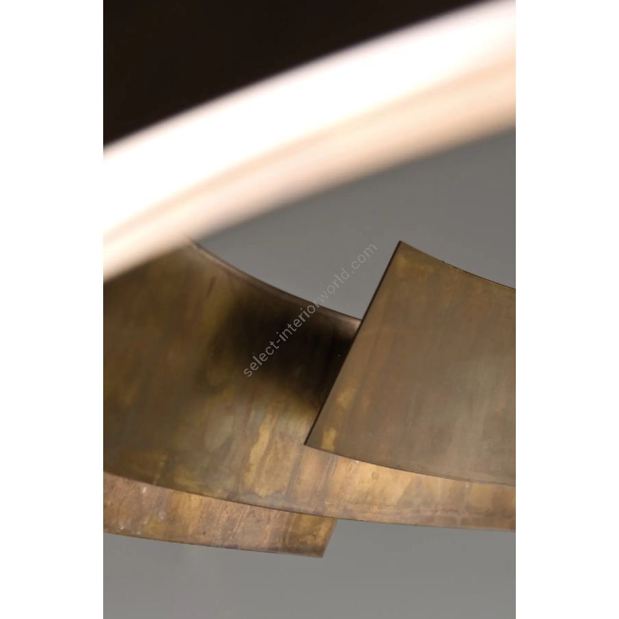 Pendant lamp with steel cables, consisting of a thin spiral strip in acid-etched brass. Available in the version with a 65 cm or 100 cm diameter.