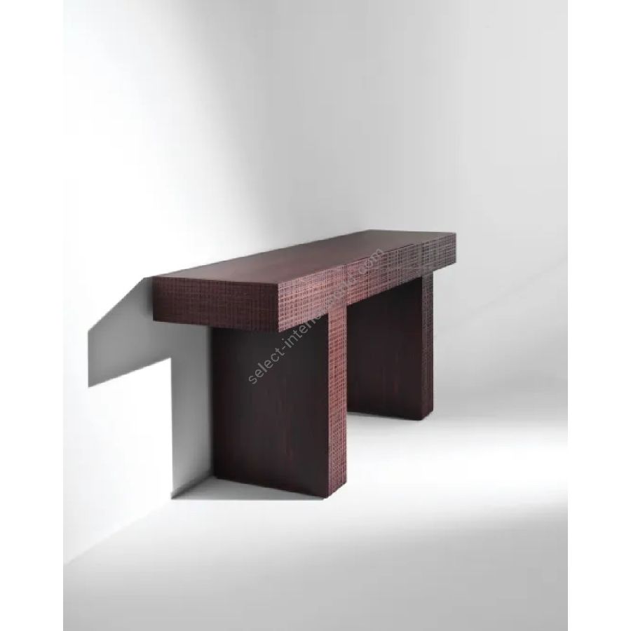 Wooden console with Maxima carving on the front, back, sides and legs. Top and sides of the legs in plain wood. Equipped with integrated drawer.
