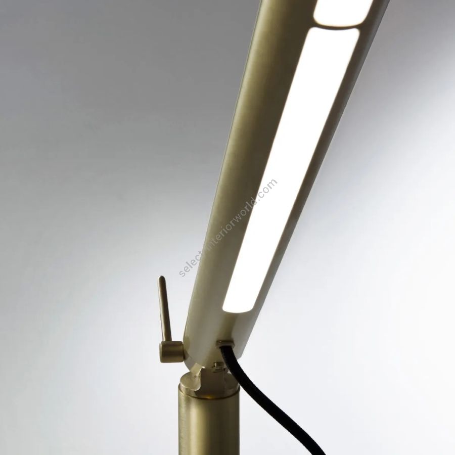 Floor lamp composed of a purist cylinder in satin brass with LED lighting.