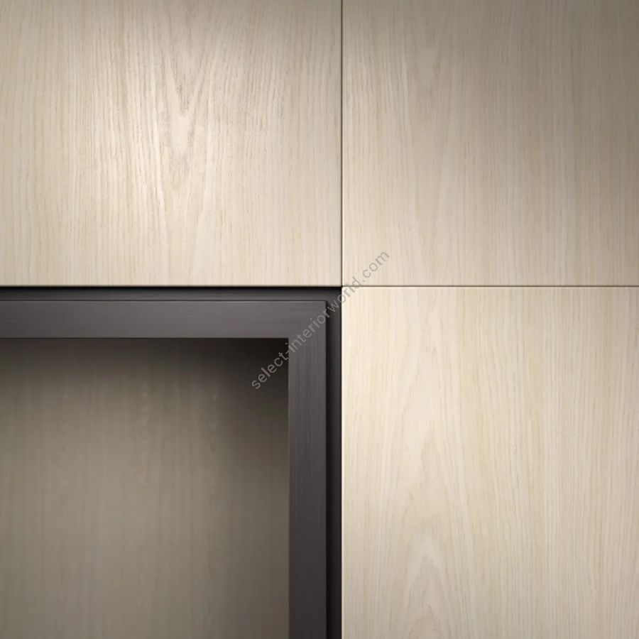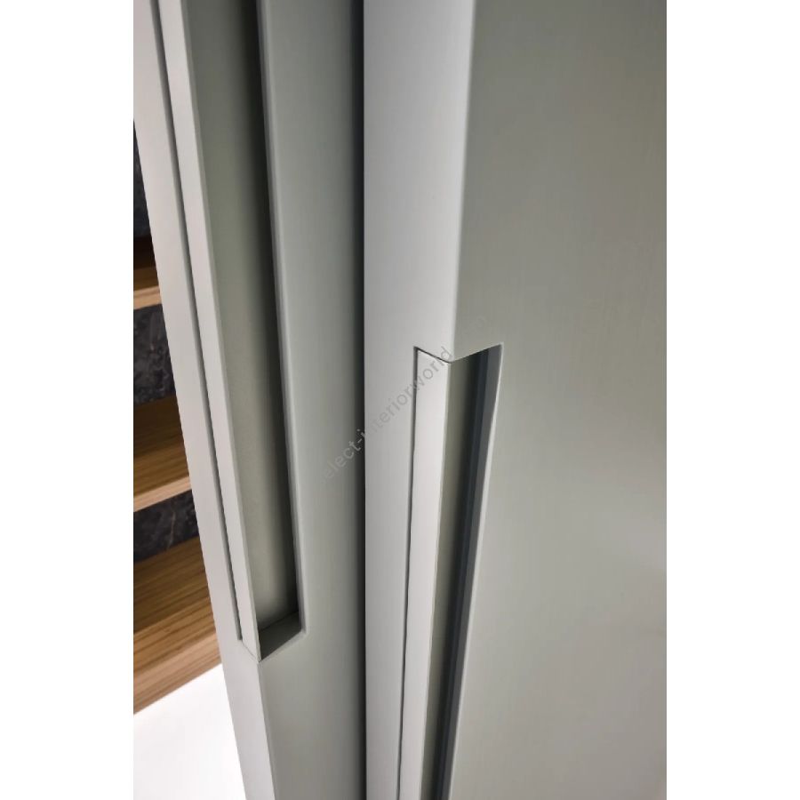 Metal handle carved into the thickness of the door. Available in all the essences of the collection, in lacquered and aniline-dyed wood in all RAL/NCS colours, and in fabric.