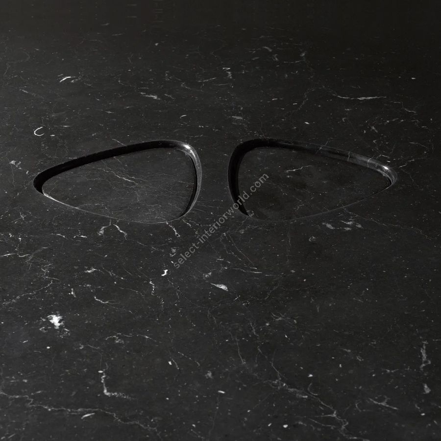 Available in the rectangular or round version, it can be customized in Bianco Calacatta, Nero Marquina and Bianco Carrara marble.