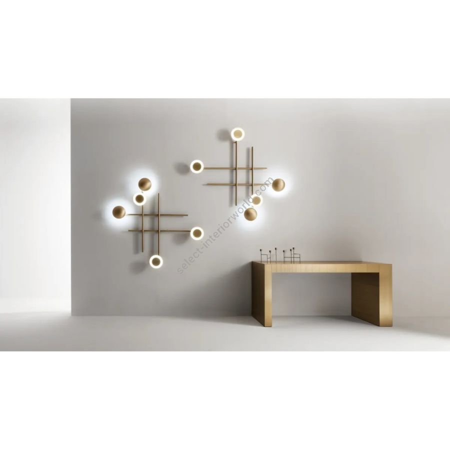 Brass ceiling or wall lamp, equipped with 8 steel cables or directly fixed to the wall.