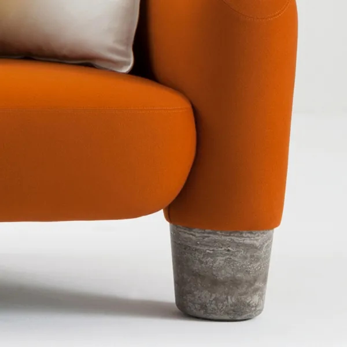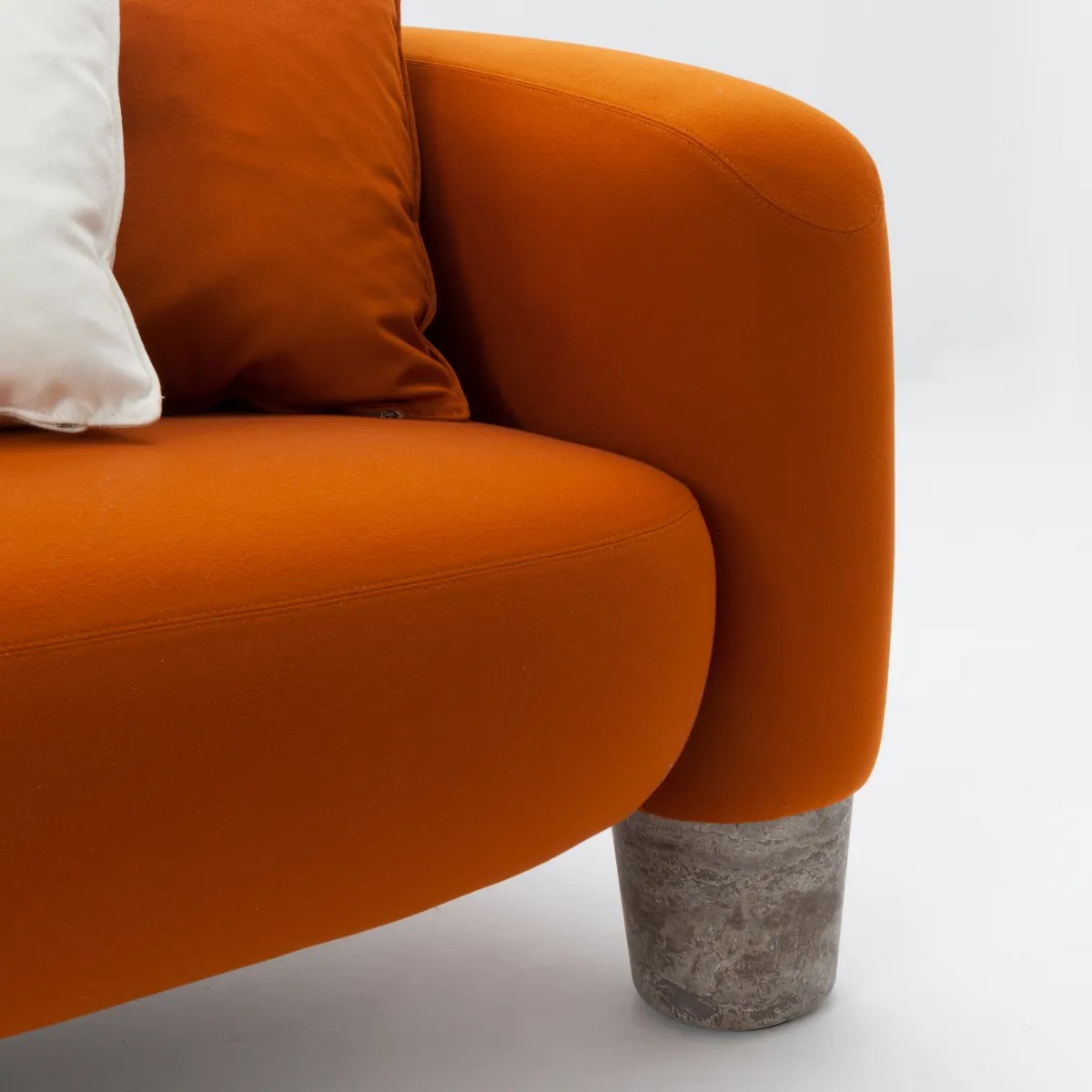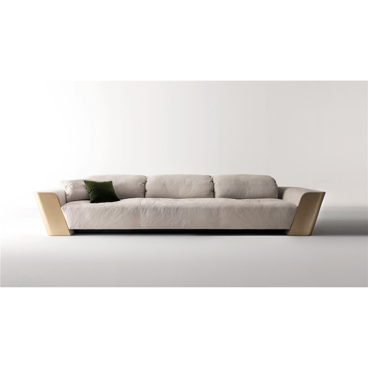 Upholstered sofa covered in leather, velvet or fabric, featuring four sturdy legs in solid marble or in solid wood.