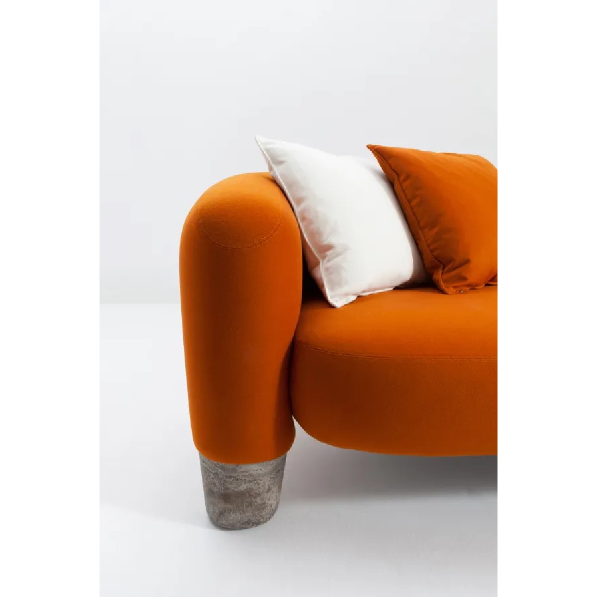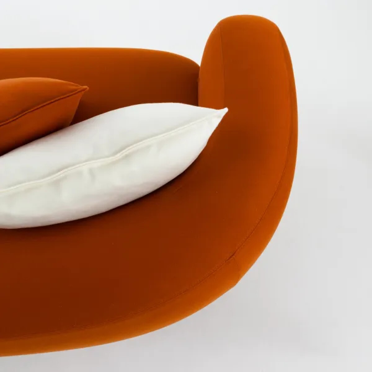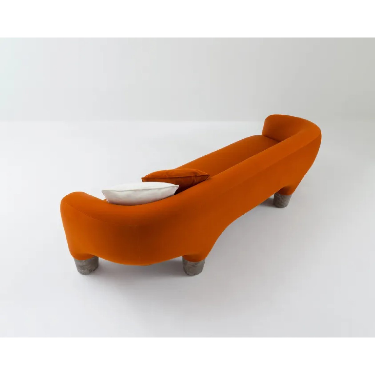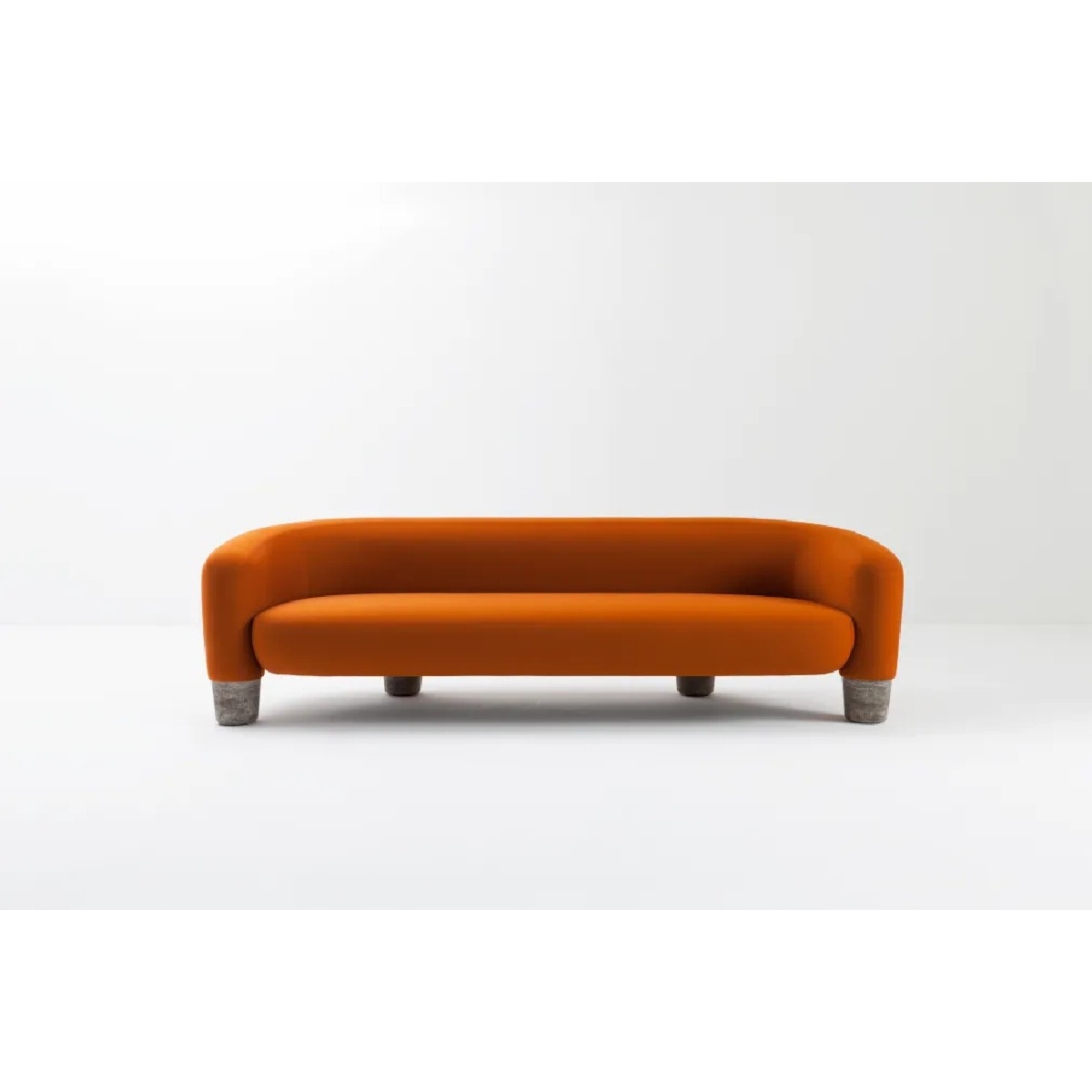 Upholstered sofa covered in leather, velvet or fabric, featuring four sturdy legs in solid marble or in solid wood.