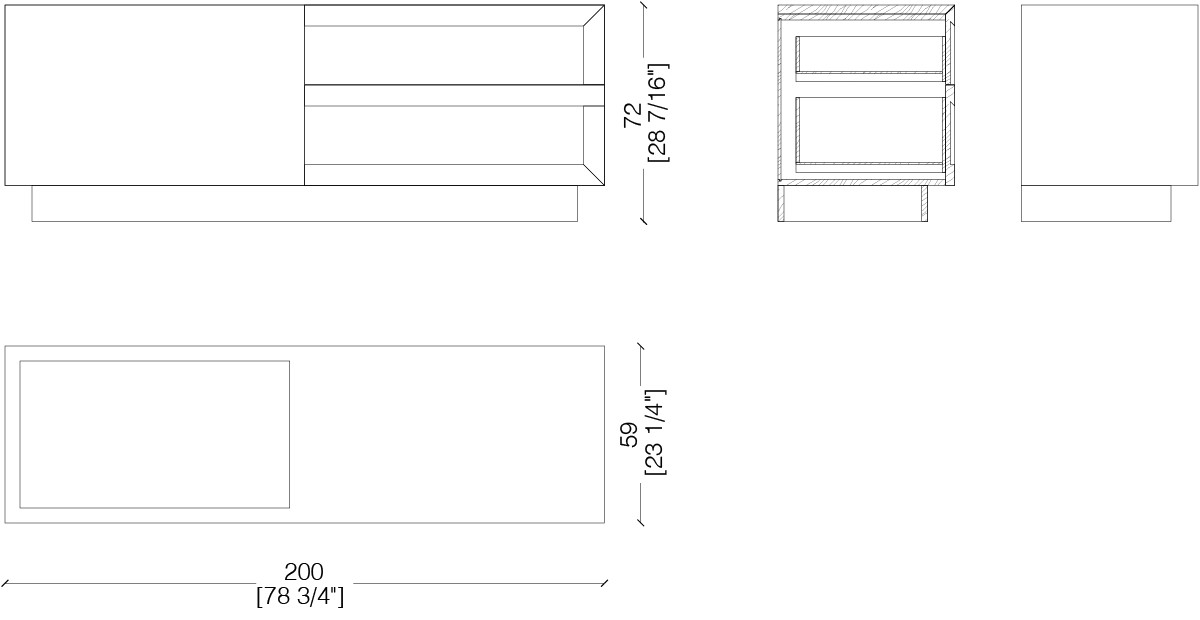 Chest of drawers with plain wood structure, available in different sizes and in various combinations of external and internal drawers.