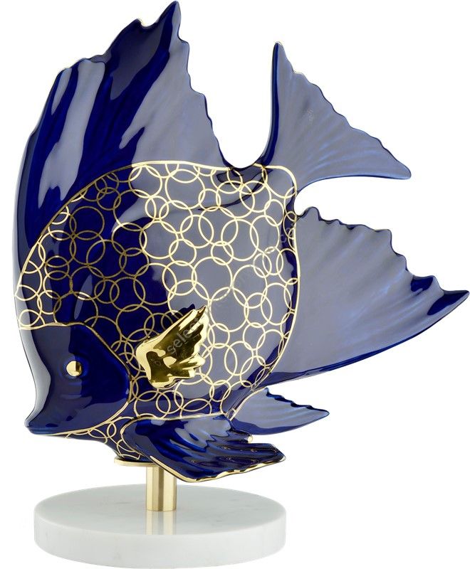 Marble Base Angel Fish Italian Porcelain 7032 by Le Porcellane, made entirely of porcelain and hand painted. A piece of the elegant and refined "Animali" collection. 100% Made in Italy product.