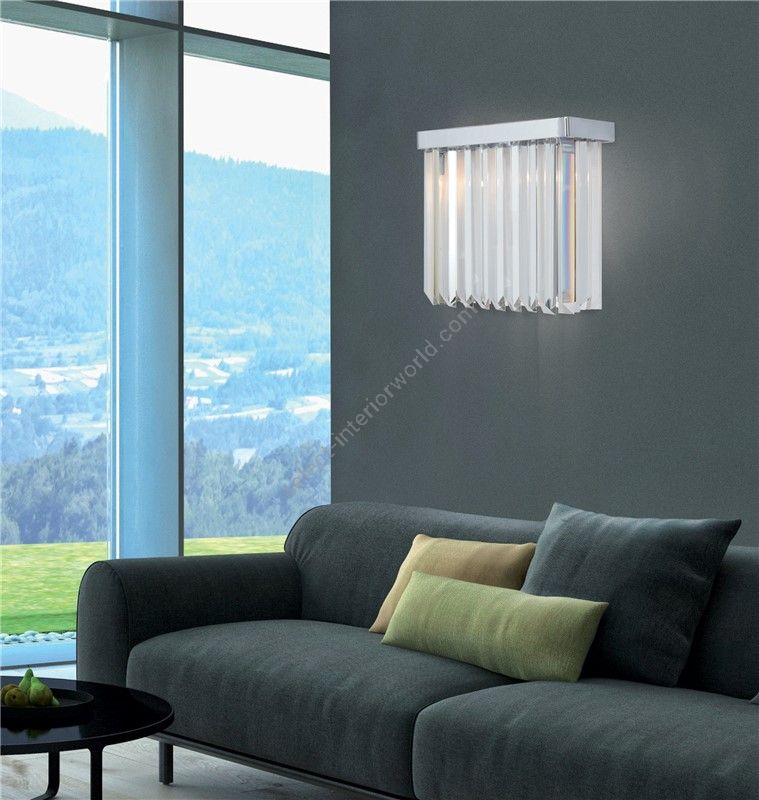 Elegant and refined indoor wall light in the purest crystal and polished chrome frame. Model available in two different sizes.
