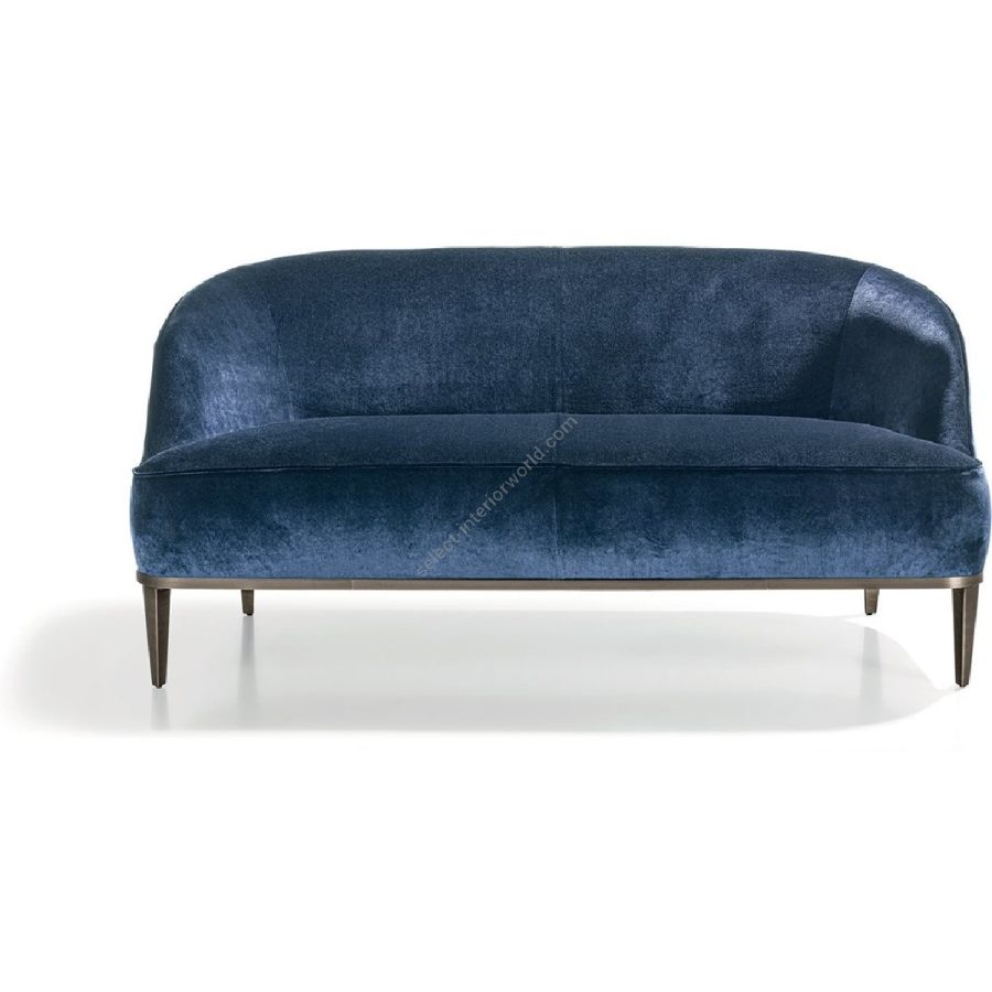 Fir load-bearing frame covered in multi-thickness polyurethane foam, with pocket coils and felt inserted inside the seat cushion. Finishing ring on the base and metal feet, available in the following finishes: Satin nickel, bright shaded brown, Black Rose gold, bright light gold, matt Champagne gold, bright chrome, bright black chrome, matt satin bronze, bright pink gold, matt pink gold. For better product quality, the fabric upholstery is not removable.