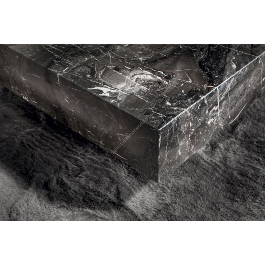A square, one-piece table, entirely in boxed marble. Formal volume, geometric with strong yet minimal architecture, perfect for integrating in living rooms with different styles.