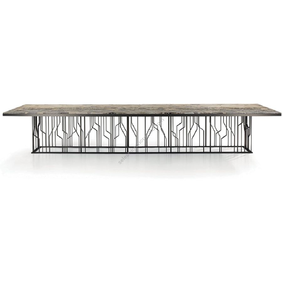 A must from the Loveluxe collection: this famous series offers tables of all sizes, consoles and other pieces designed with the unmistakeable style of Alessandro La Spada. To set in the centre of a room, and ideal when matched with the Miu chair and lighted with the impressive Narita chandelier, the Ginza table has rectangular surfaces supported by a characteristic base decorated with polished or matt metal rods that look like stylised “flashes”. This is the distinctive mark of the entire Ginza series.
