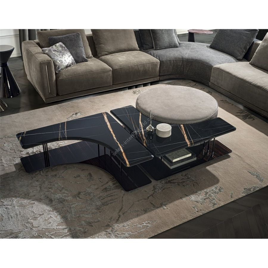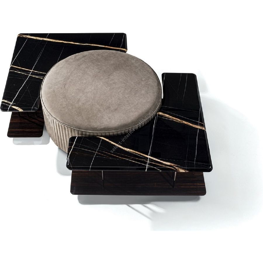The Saturn coffee tables are conceived as single pieces of furniture- as end tables for sofas - which can be combined with one another, to be used independently or paired with the Felix ottoman, creating interesting contrasts between soft and rigid materials and thus lending a dynamic quality to the various arrangements.