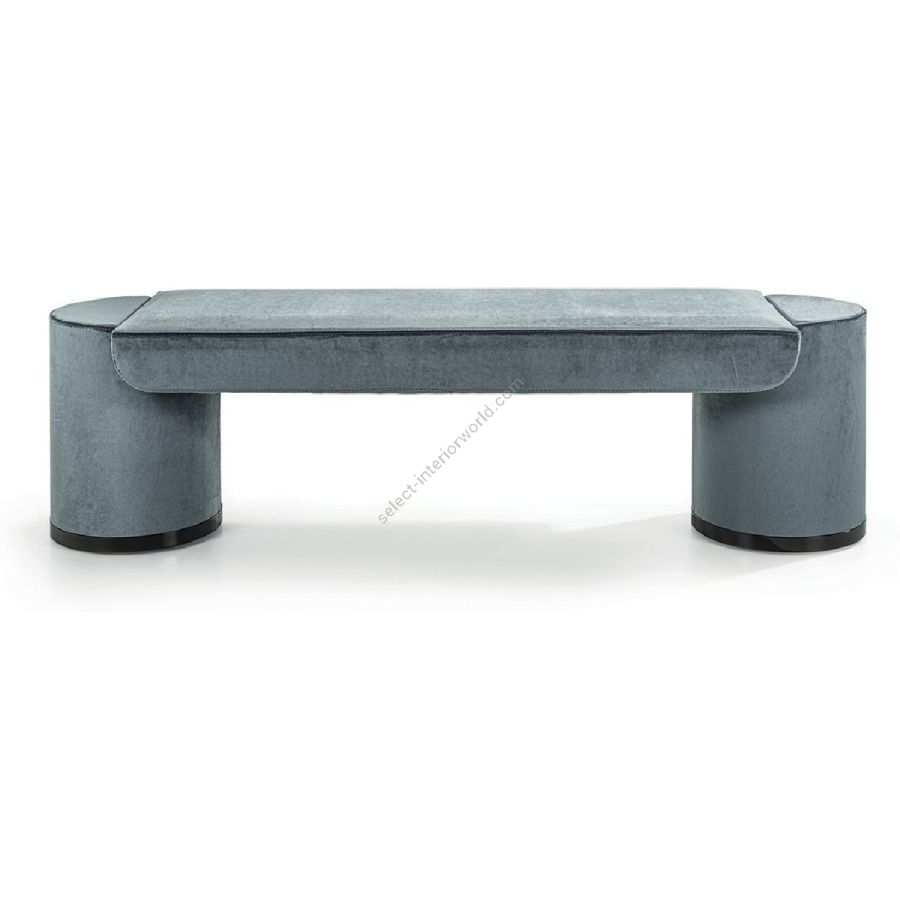 Frame in wood covered in medium thickness rigid polyurethane foam. A metal ring decorates the base, offered in the following finishes: Black Rose gold, bright shaded brown, bright light gold, matt Champagne gold, bright chrome, bright black chrome, matt satin bronze, bright pink gold, matt pink gold. Leather and fabric upholstery is NOT removable.