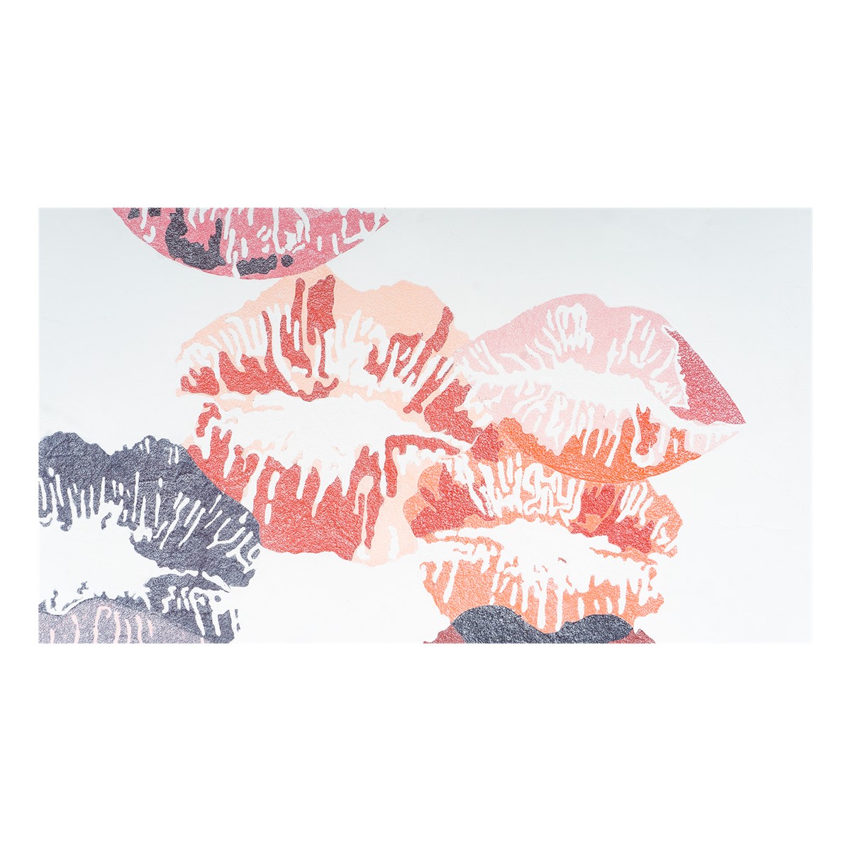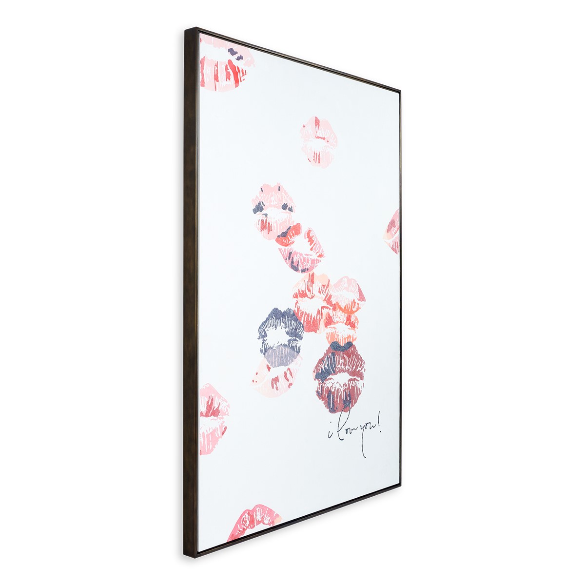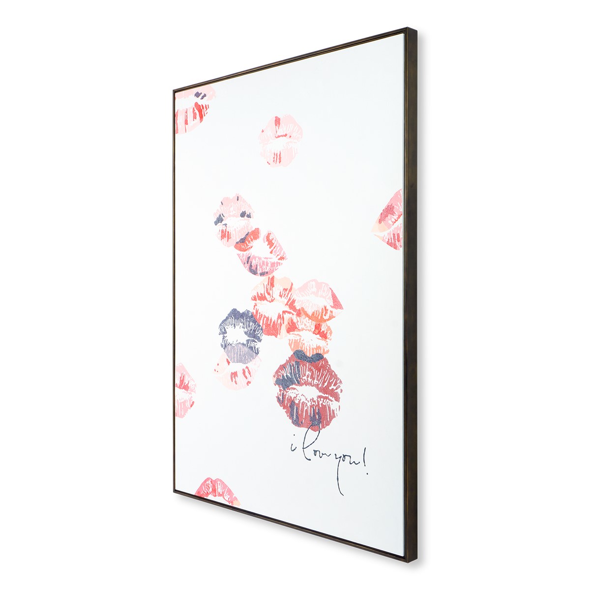 Fall head over heels for the thousand kisses that have overflowed onto the canvas in this romantic wall art piece, signed 'I love you!' by a mysterious anonymous admirer.