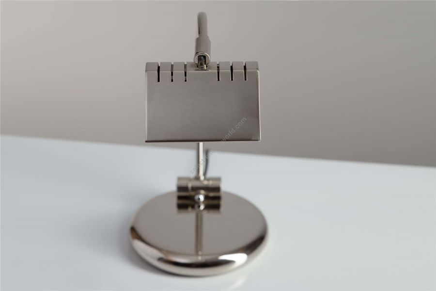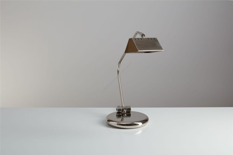 Table or desk lamp, the Gauguin lamp plays the opposition of its base, all in roundness, and of its adjustable reflector with more angular forms.
