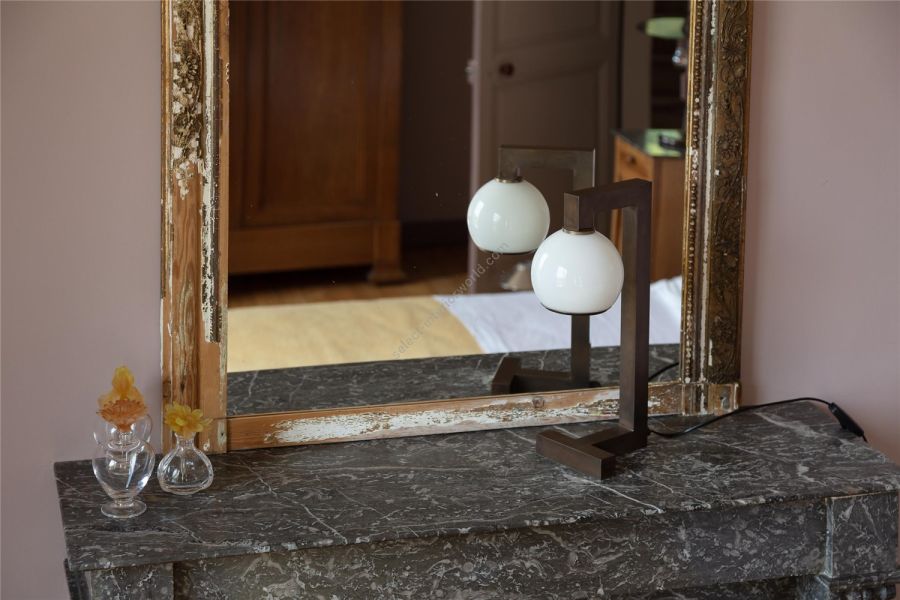 A little 1940s air for the Ombre de Lune collection which plays the game of contrasts by combining the rectitude of the supports and the roundness of the opaline glassware. A happy synthesis between strength and softness, depending on the chosen patina, Ombre de Lune will move from the bathroom to the bedroom, to the hallway or even to the living room in its XXL version!