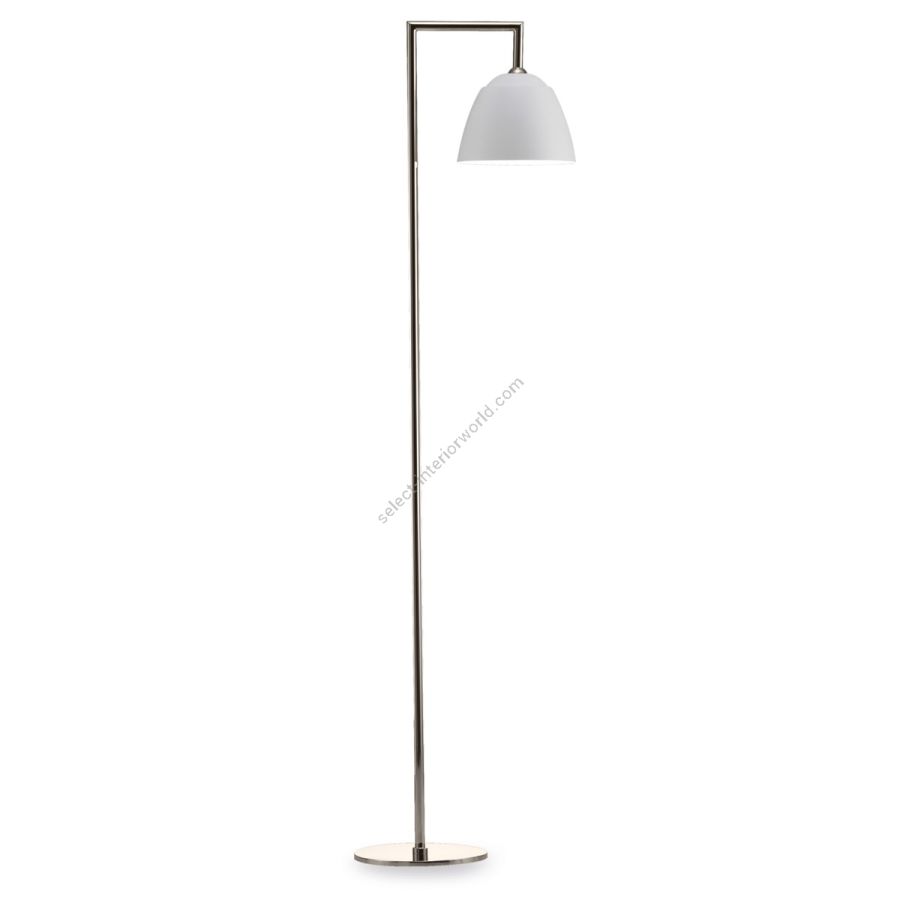 The floor-standing item consists of a structure made of polished nickel-finish brass and a painted metal lampshade, presented in white or black. Excellent for decorating and enhancing the interiors of bedrooms and living areas. Available in different variations of colors and finishes.w