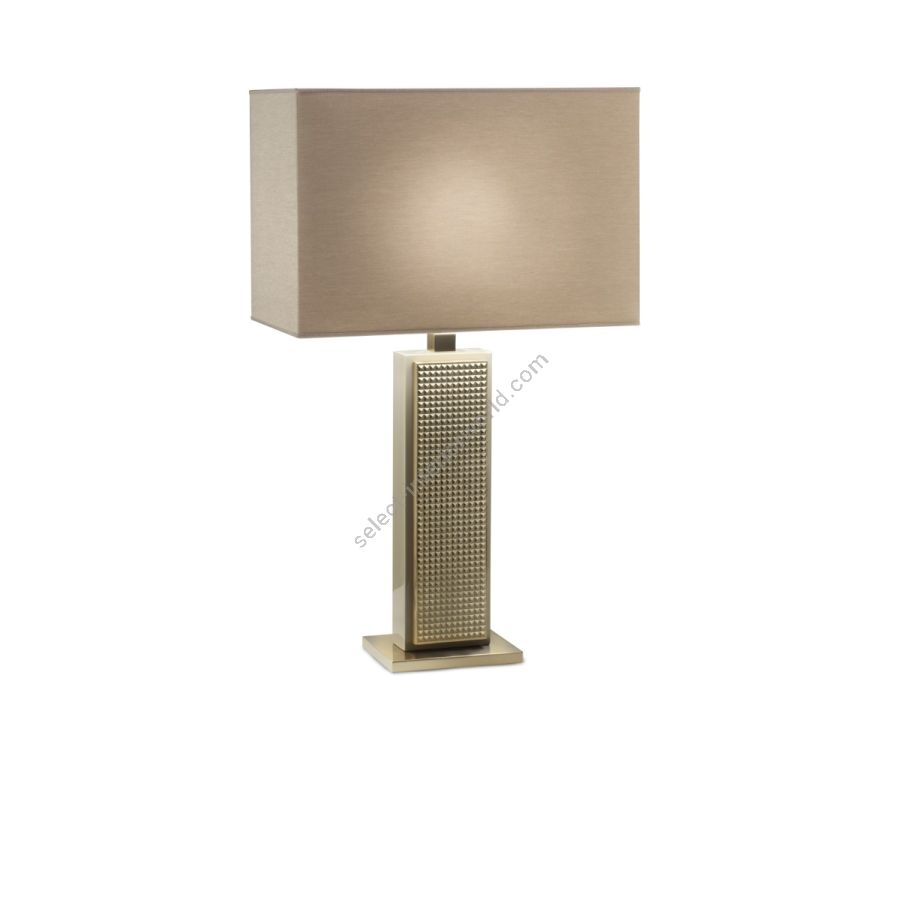 The Cobalto series lamps line is characterized by a brass structure, with a light gold finish and a rectangular fabric lampshade.