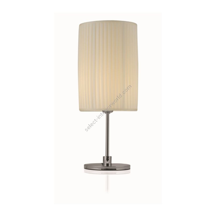 The Cook series represents a selection of lamps, the main feature of which is to be found in the elegant lampshade with a cylindrical shape in ivory pleated fabric and in the aesthetic balance, which it achieves together with the brass structure in polished nickel finish.