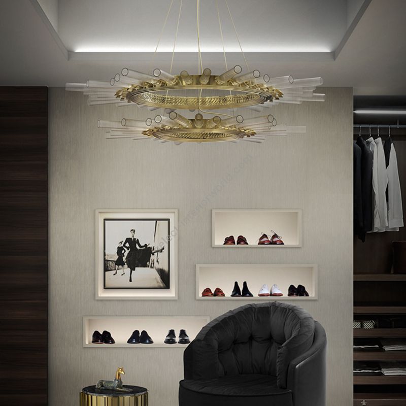 The Majestic Suspension takes the form of two delicate lighting fixtures whose golden plated brass and crystal glass cylinders create an outstanding and exclusive design. With fine attention to detail, the craftsmanship of the Majestic II enables an exquisite and passionate atmosphere to any environment.