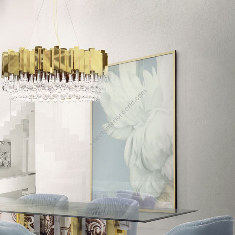Designed to be one of the Trump’s successors lineage, the characteristic lines of this piece and its sublime tears of crystal glass makes it unique. With an extreme elegance and a luxurious presence, the perfect lighting for the perfect living room.
