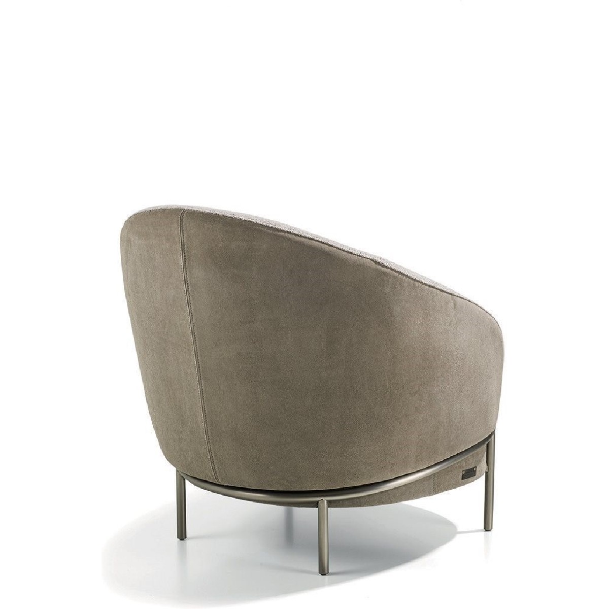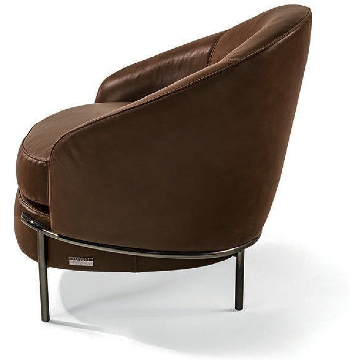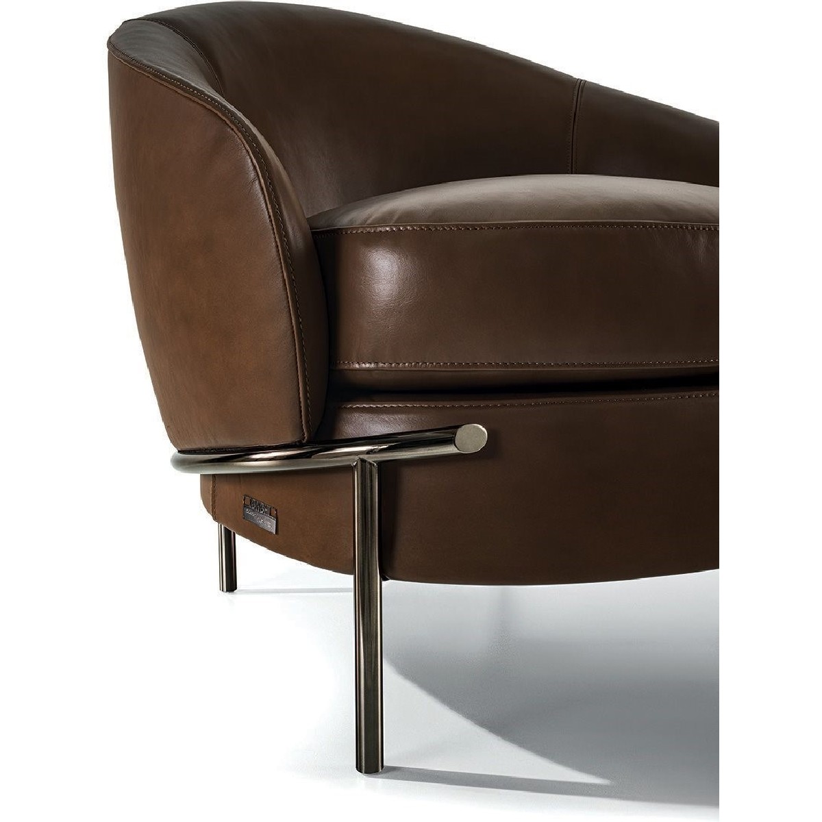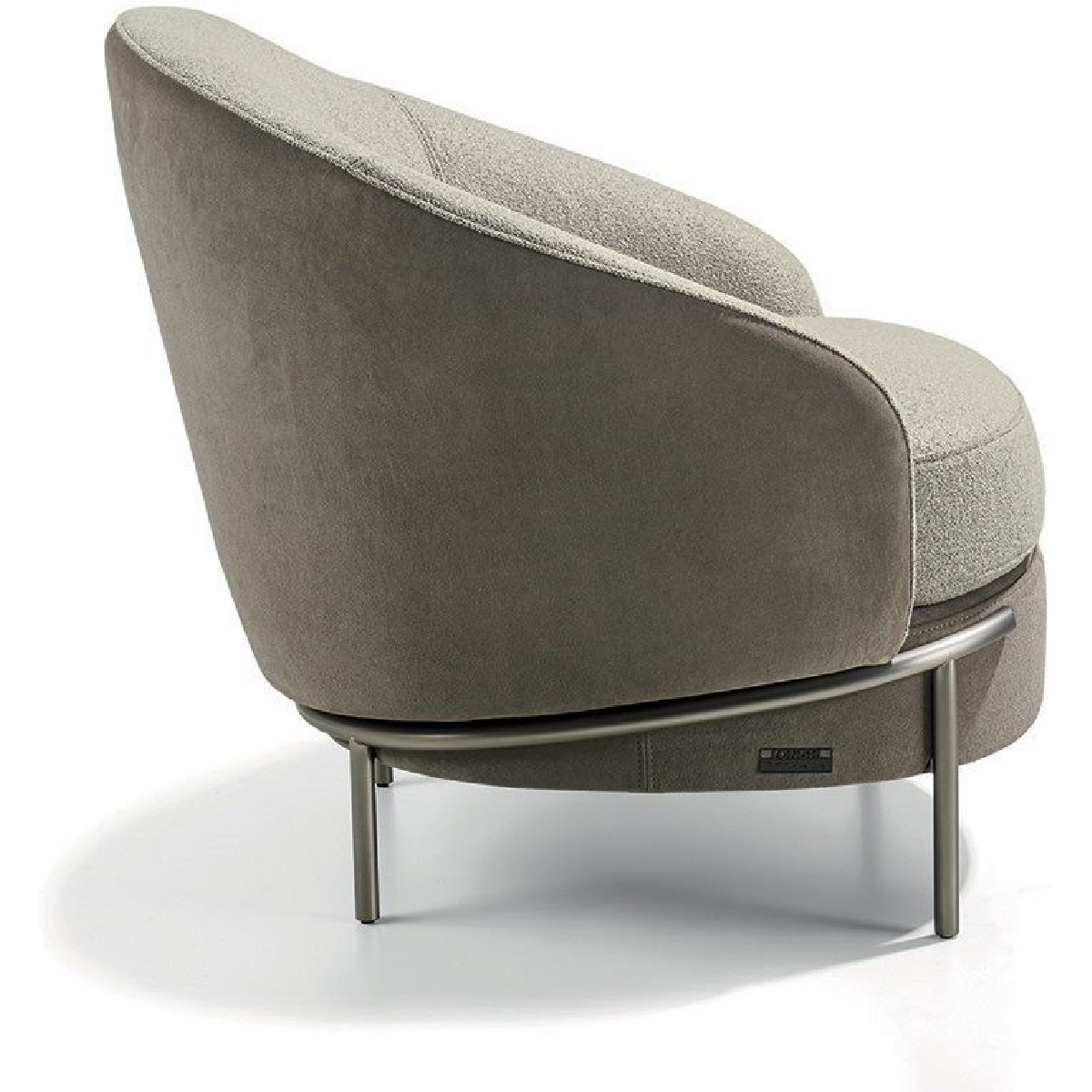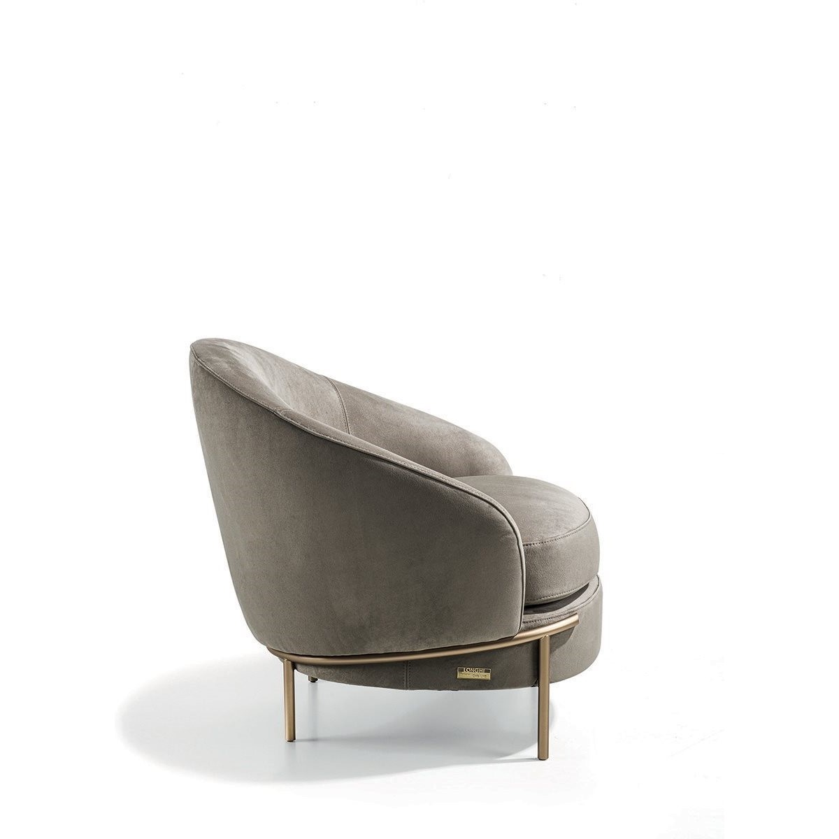 The sleek, wrap-around line of the metallic feet is highlighted by the soft curve of the armrest. Vintage in flavour, the overall shape is given a contemporary twist by the use of extremely sophisticated fabric or leather upholstery, both for the seat cushions and for the outer structure, resulting in an extremely elegant mix of materials.