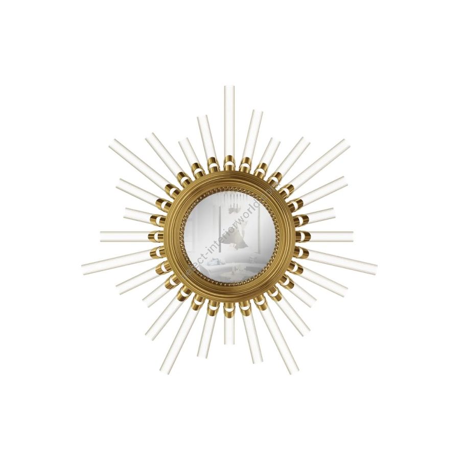 The Majestic Wall Light Mirror combines the radiant glow of a gold-plated brass circle with ribbed crystal glass cylinders, creating a captivating and awe-inspiring effect in any setting. The play of light and texture evokes a sense of enchantment and refinement, making it a perfect addition to upscale interiors. Crafted with meticulous attention to detail, this luxury mirror embodies the essence of desire and luxury.