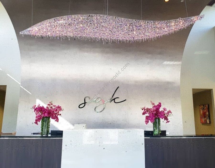 Reminiscent of waves on a transcendentally calm ocean, Vague represents the next generation of Manooi chandeliers and is a precursor to the Crystalight Collection. With its dynamic shape and sinusoidal appearance, Vague demonstrates the true potential of crystals and showcases Manooi expertise at its finest. It can be installed on its own or in different sized clusters.