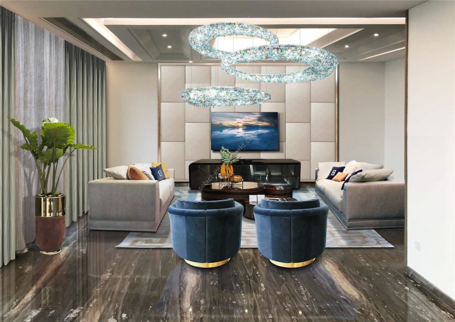 Rio crystal chandelier embodies the beauty of refined asymmetry, merging irregular form with the perfect geometry of a circle. Inspired by the natural pull of gravity, Rio crystal light offers a bold twist on traditional symmetrical designs, making it an excellent choice for those seeking something unique and unconventional. Available in various sizes and crystal color combinations, Rio can be installed as a singular statement piece or in multi-size clusters. Whether illuminating a grand atrium, an elegant hallway, a cozy living room, or a stylish bedroom, Rio elevates any environment with its powerful presence and exquisite sparkle. In addition to our standard premium crystal selection, Rio is available with 100% Swarovski® crystals.