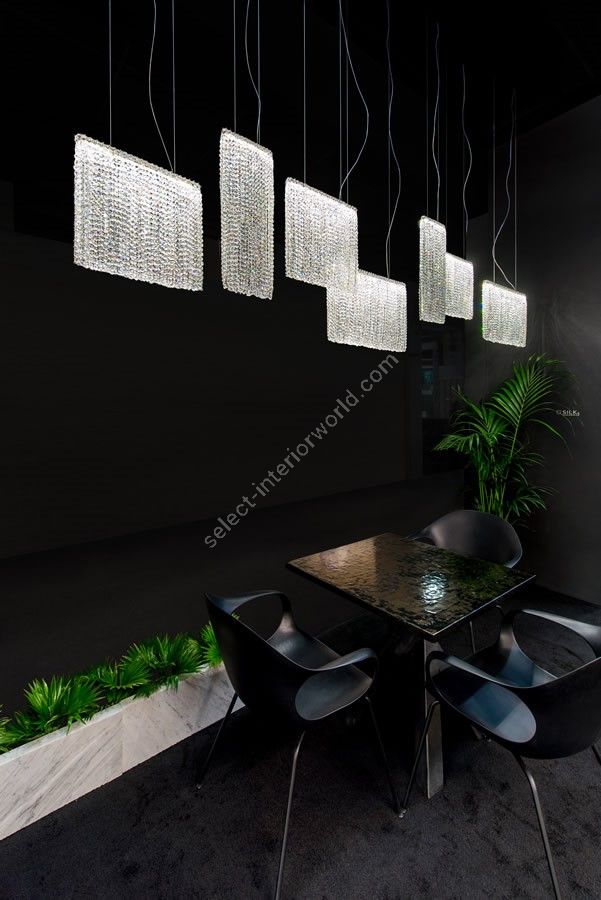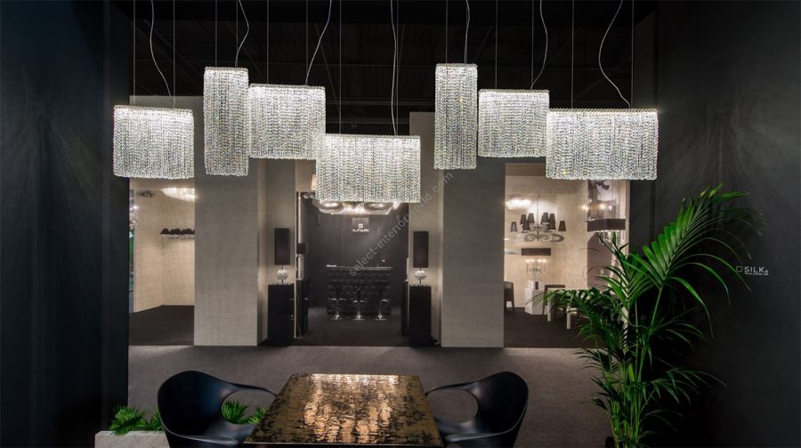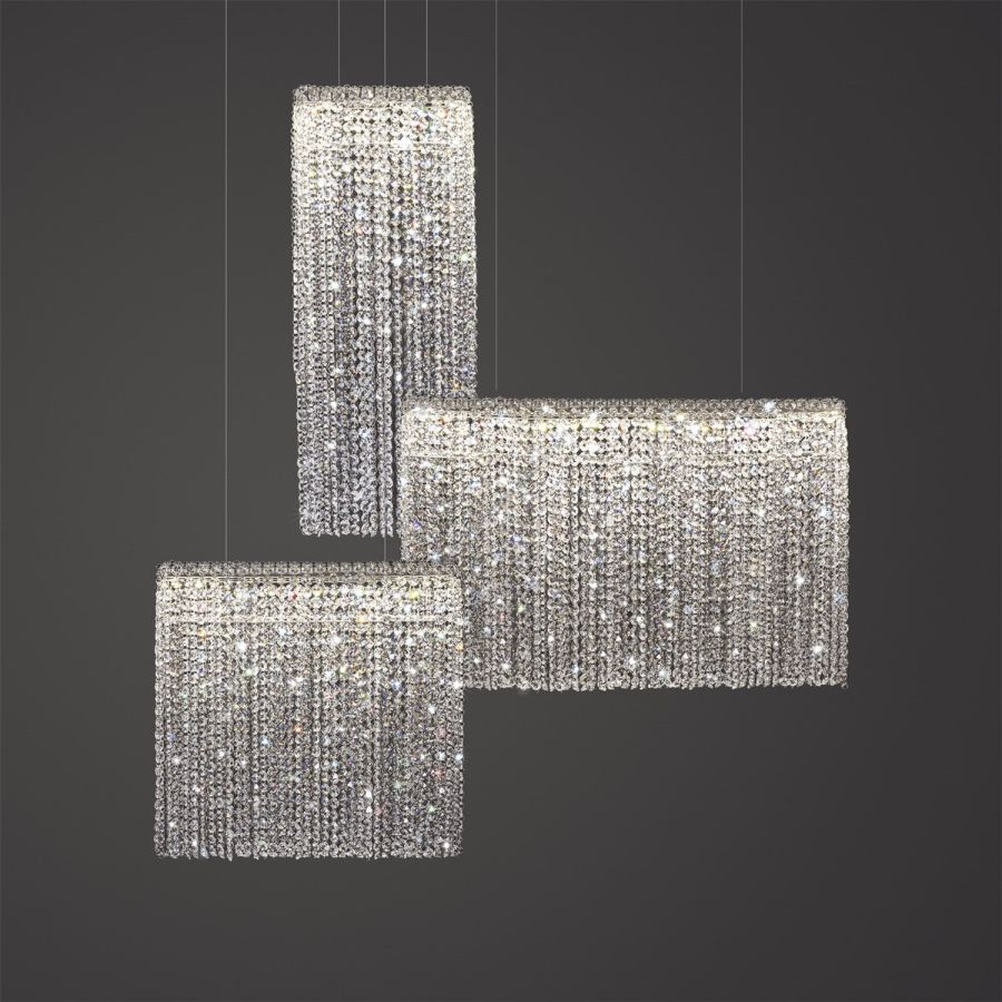 Silk represents the flowing lightness of matter – a smooth, refined to the tiniest detail and absolutely stunning contemporary chandelier. This unique model redefines the concept of crystal lighting by including simple-but-fascinating modern geometry. The perfect choice for a lobby, living room or above a dining table, you can choose a transparent or coloured crystal combination in standard sizes or according to your needs.