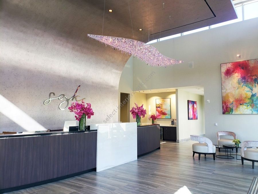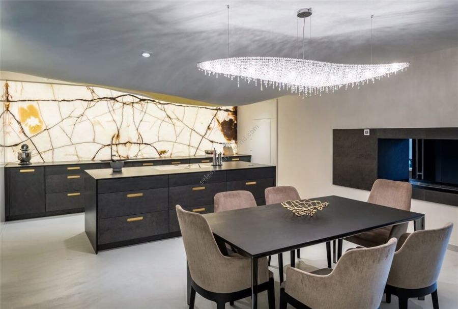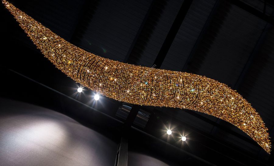 Reminiscent of waves on a transcendentally calm ocean, Vague represents the next generation of Manooi chandeliers and is a precursor to the Crystalight Collection. With its dynamic shape and sinusoidal appearance, Vague demonstrates the true potential of crystals and showcases Manooi expertise at its finest. It can be installed on its own or in different sized clusters.