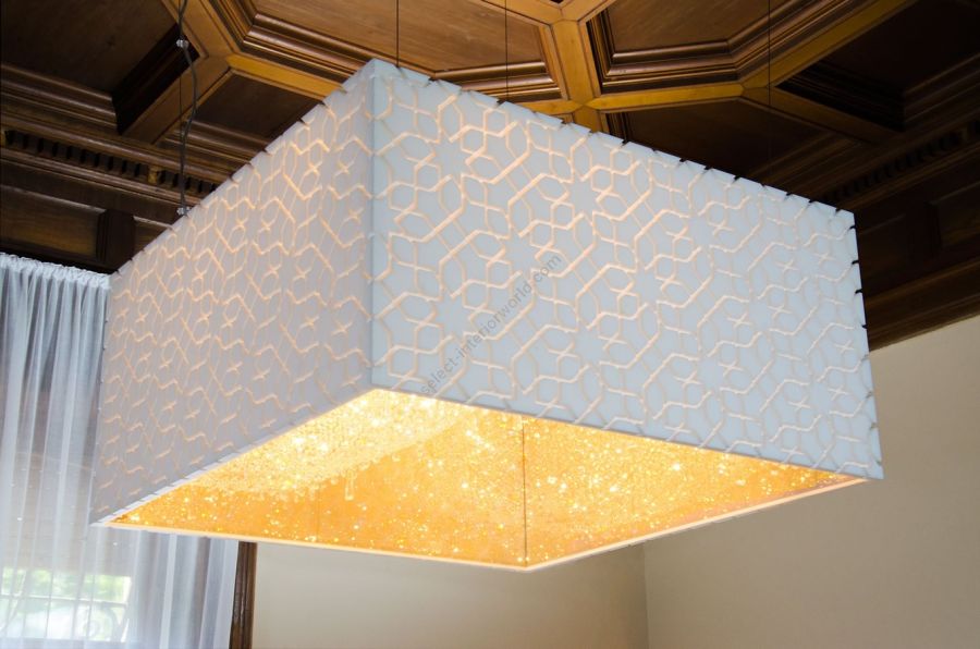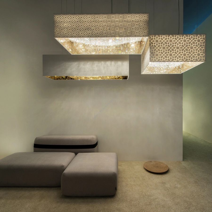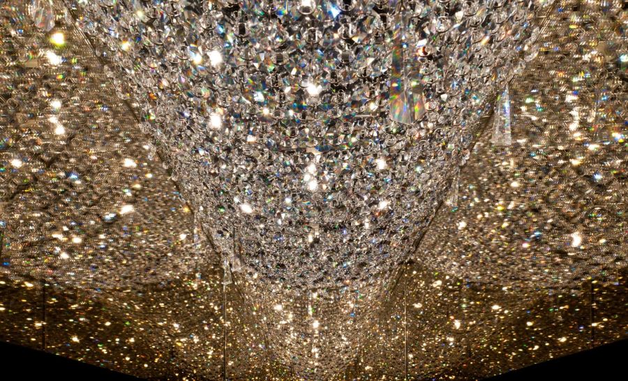 Deep Sky is an attempt to grasp the infinity of space, composed of crystals augmented by their own reflections. This endless mass of twinkling stars is only visible from below, within the solid mirror box structure concealing a sparkling multitude. Available in 18 standard sizes for different architectural spaces, Deep Sky is the most versatile and popular chandelier in the Personal Universe Collection.