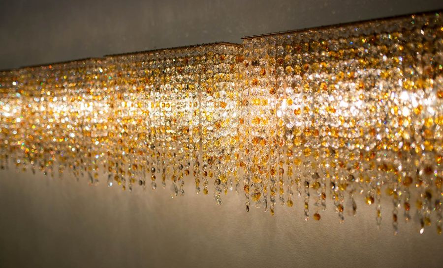 A wall-mounted version of the Linea crystal chandelier, Linea Wall captures the same sense of elegance and movement in a more compact design intended for vertical surfaces. Evoking the delicate beauty of icicles suspended from a rooftop, this handmade crystal chandelier features shimmering crystal strands of various lengths that create a soft, cascading effect, bringing sparkle and texture to walls. Its elongated silhouette makes it especially well-suited for bedrooms, bathrooms, lobbies, and passageways. Linea Wall crystal chandelier is available in various sizes and crystal color combinations, with bespoke options available upon request. Whether used individually or in a repeating series, this wall-mounted crystal lamp lends subtle luxury and natural elegance to its surroundings.