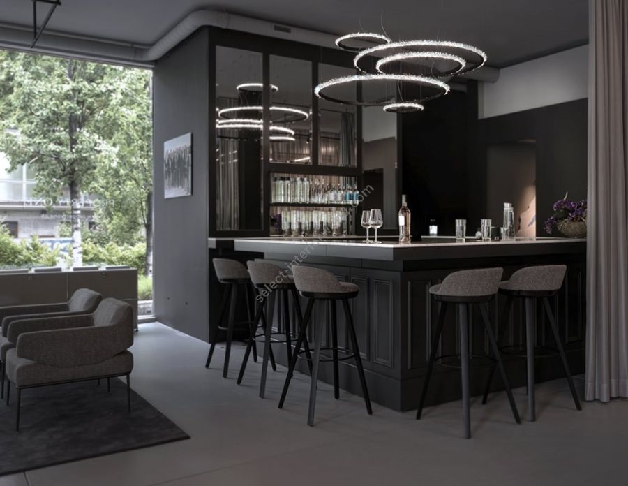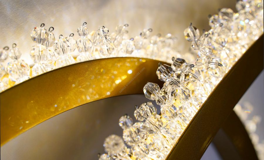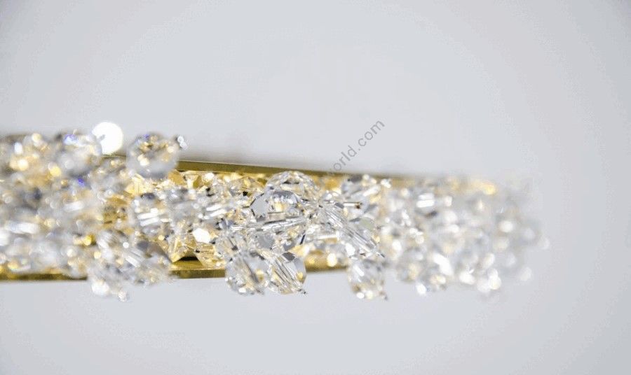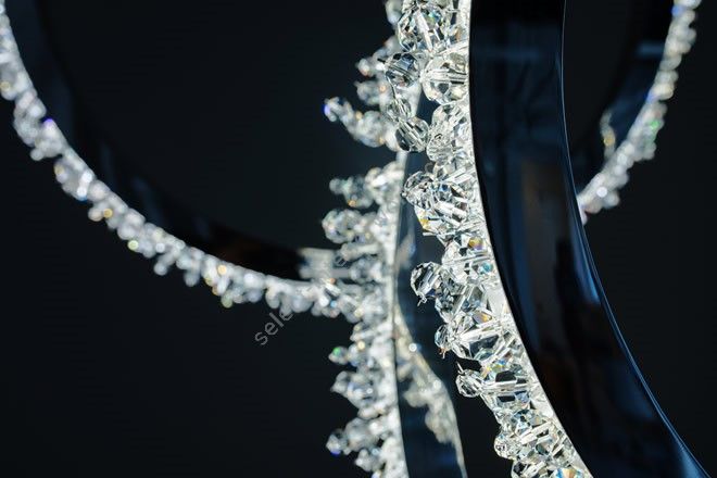 Halo crystal chandelier, inspired by the radiant glow of celestial bodies like the sun and moon, is designed to refract light with the brilliance of ice crystals in the atmosphere. Crafted with minimal materials and the precision of a handmade crystal chandelier, the Halo crystal lamp feels both weightless and substantial, as an embodiment of refined simplicity. Its crystals are arranged into delicate branches that resemble frosted rays, scattering light into a cascade of sparkles and creating a warm, radiant glow. This minimalist crystal chandelier invites viewers to experience the beauty of pure light. With its contemporary silhouette and clean geometry, this modern crystal lamp integrates effortlessly into both classic and modern interiors. The Halo chandelier can be installed vertically or horizontally, displayed as a single statement piece or in clusters, offering limitless versatility in luxury design settings.