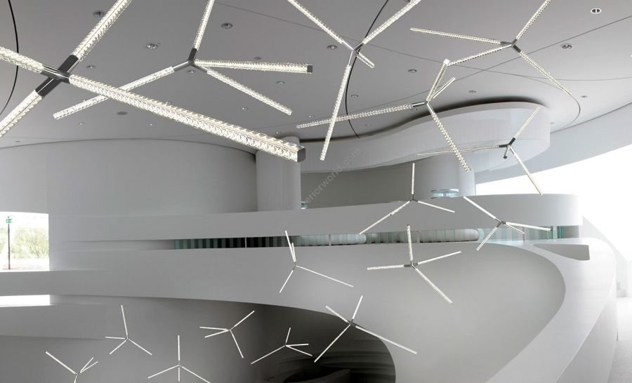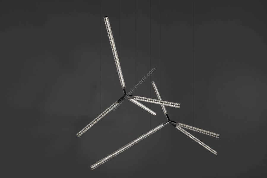 Hanabi spark from Manooi grasps the sensation and effect of the shimmering light of fireworks. Creating a splendid impression using the finest crystals and high-tech LED components, this contemporary designer lighting can be combined limitlessly in compositions filling enormous spaces with the elegant play of light. This chandelier looks stunning in various style and shape clusters, for a striking impact.