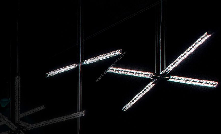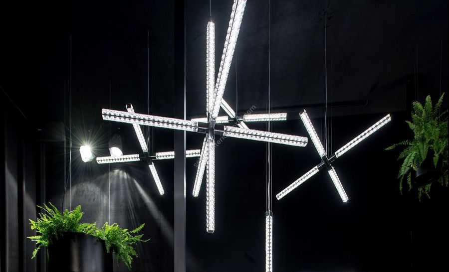Hanabi X from Manooi grasps the sensation and effect of the shimmering light of fireworks. Creating a splendid impression using the finest crystals and high-tech LED components, this contemporary designer lighting can be combined limitlessly in compositions filling enormous spaces with the elegant play of light. This chandelier looks stunning in various style and shape clusters, for a striking impact.