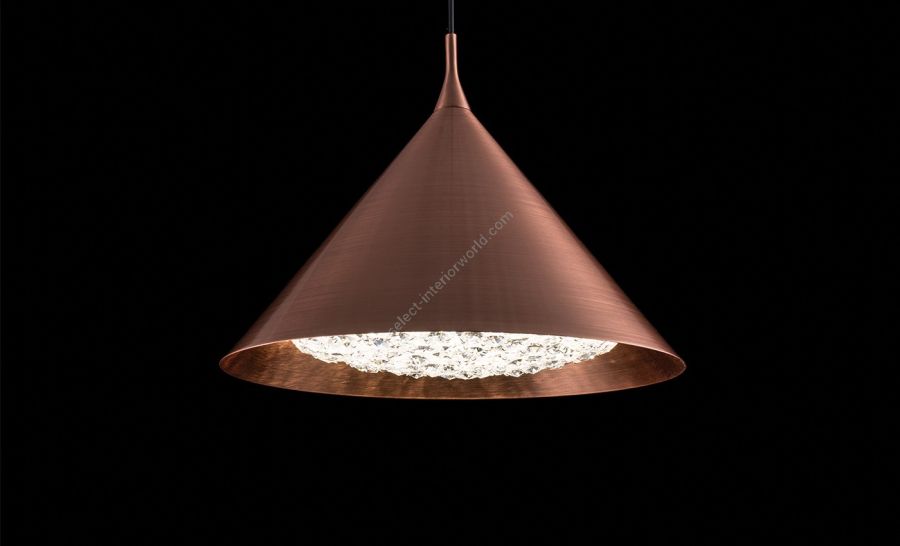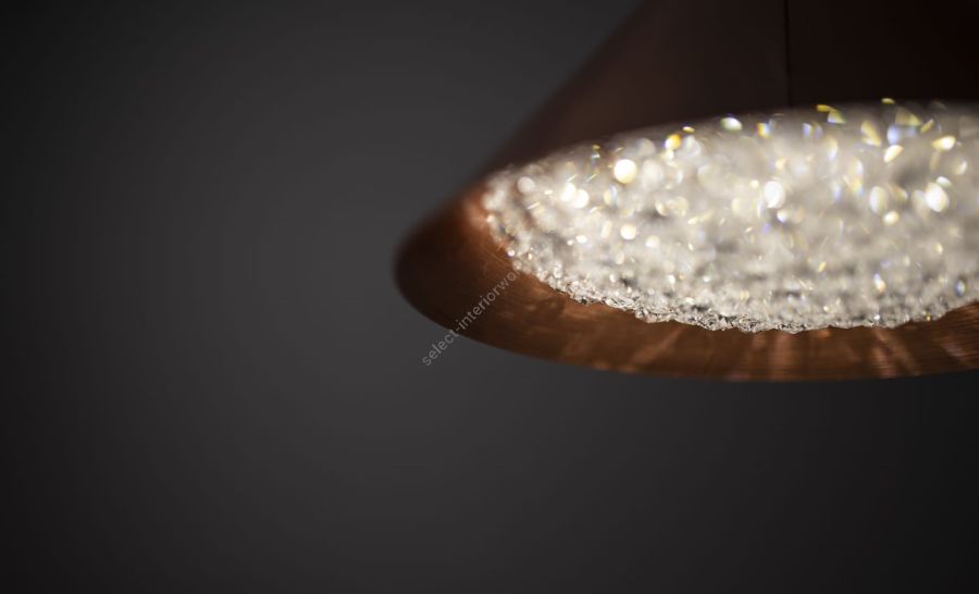 Origo Cone builds on the minimalist elegance of the original Origo pendant lamp, now reimagined in a smooth, refined cone shape. With its brushed copper lampshade and energy-efficient LED light source, Origo Cone crystal chandelierbrings warmth and glamour to any setting. Apart from copper, this handmade crystal chandelier is also available in black or white painted steel finishes. It comes in multiple sizes and two distinct cone silhouettes. Whether hung alone or arranged in striking clusters, Origo Cone offers endless creative possibilities to suit any interior style. Each crystal lamp is meticulously handcrafted and adorned with premium-quality crystals that add a subtle yet sophisticated sparkle to its streamlined form. Bespoke options are available upon request, allowing designers to tailor the Origo Cone to unique spatial and stylistic requirements.
