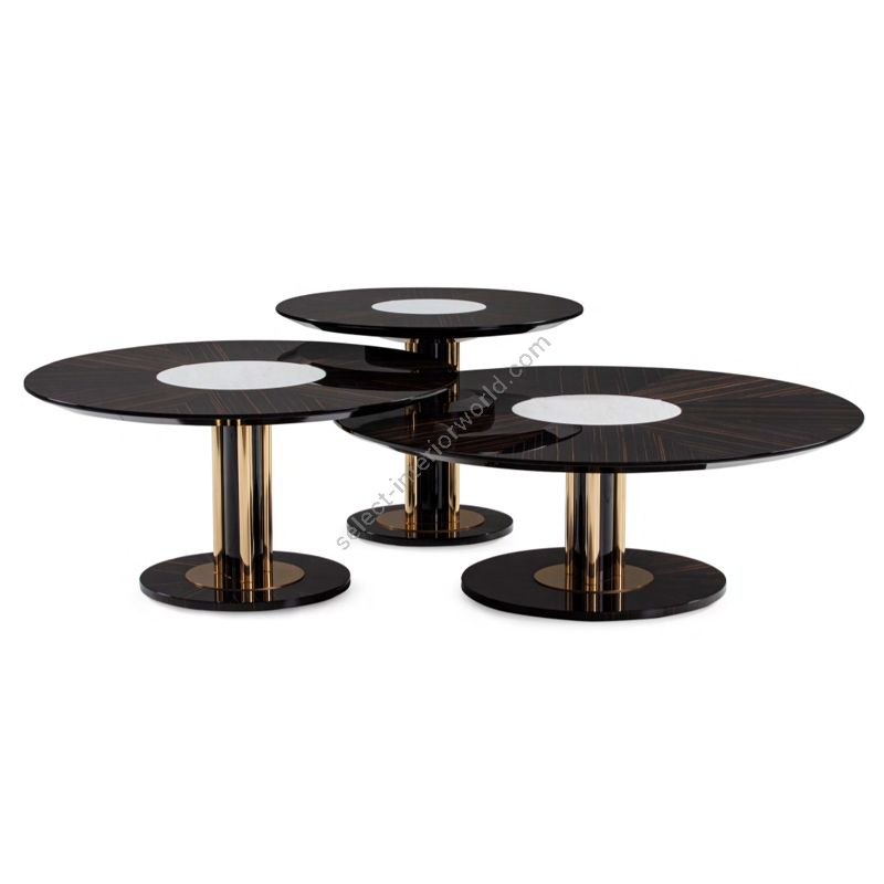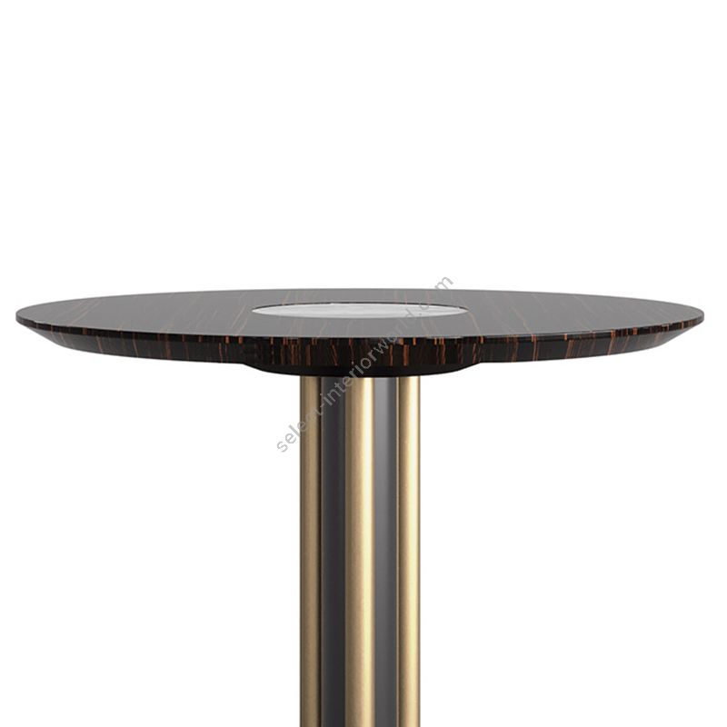 Classic coffee table with round top is made of Makassar wood and polished brass.