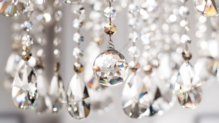 - Galvanised metal frame with arms covered in clear glass. Clear glass or clear crystal pendants.