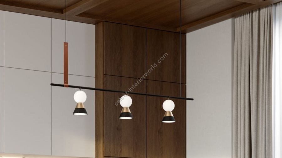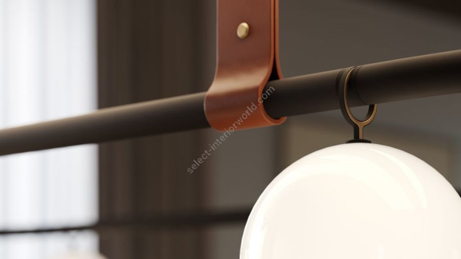 - Frame in galvanized metal with a matte black finish. Leather strap. Diffuser in white opaline Murano triplex glass.