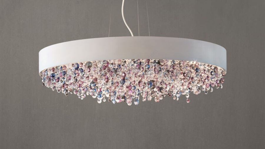 - Painted metal structure with pendants (crystal or glass).