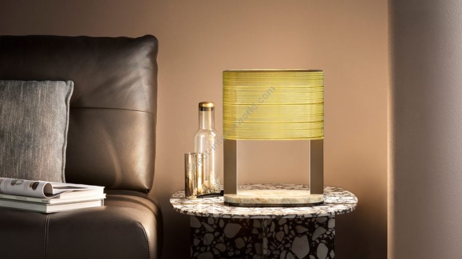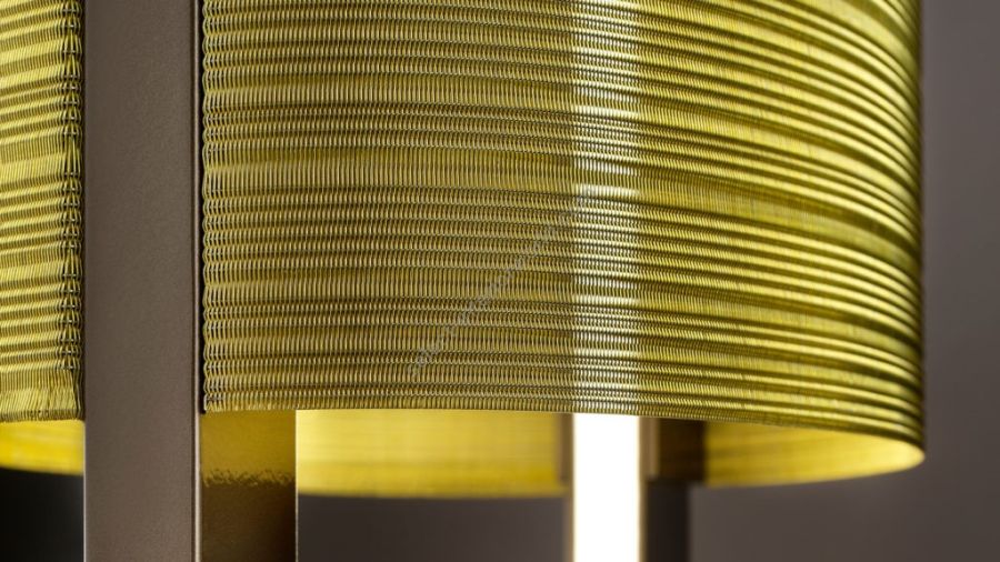 - Painted metal structure. Brass wire mesh design.