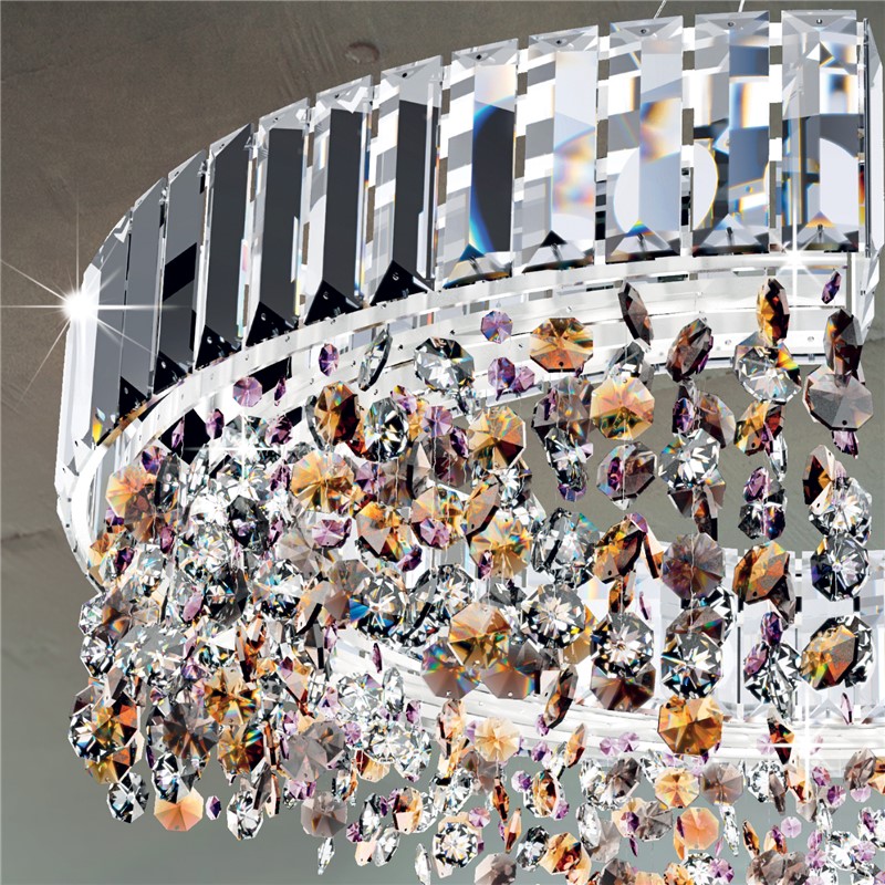 Band made of ultra-pure crystal hand-ground lozenges, pendants formed by octagons of different sizes and mixed colors such as clear, amber, pink and smoked.