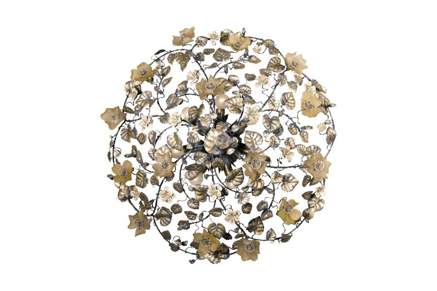 7 lights ceiling lamp in wrought iron with Murano glass