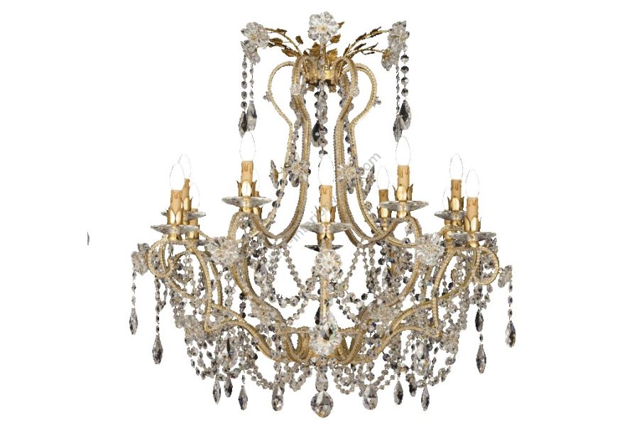 chandelier in wrought iron with clear Bohemian crystal and clear pearl banding