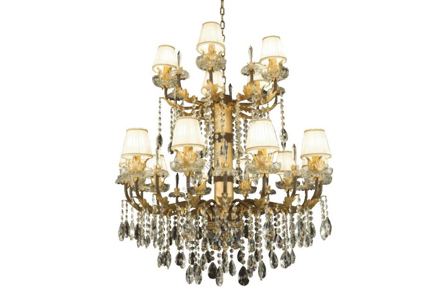 - Mechini / Chandeliers / Bohemian Crystal and Silk Lampshades L324/15