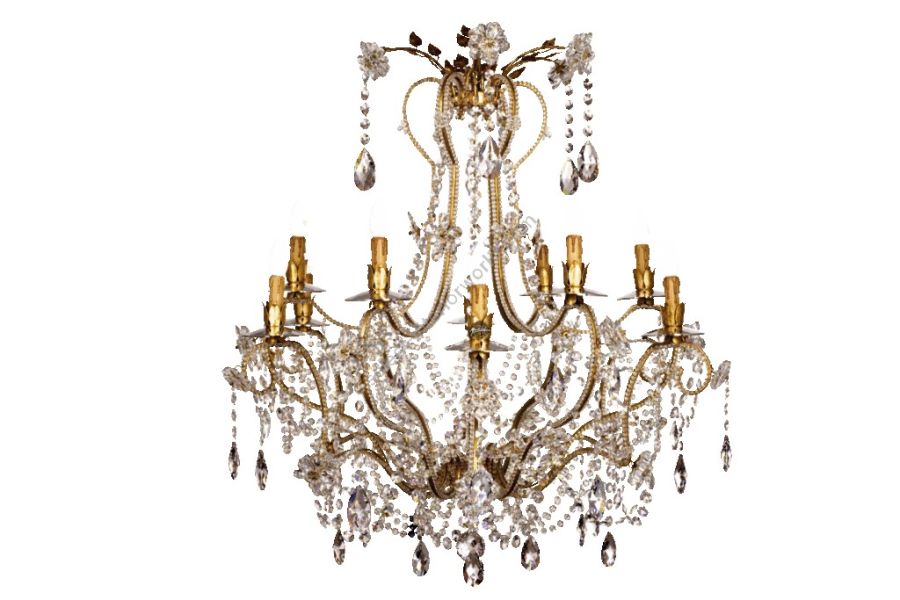chandelier in wrought iron with clear Bohemian crystal and clear pearl banding