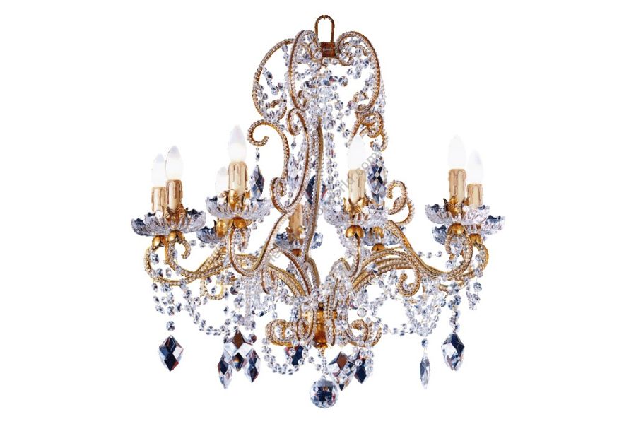 10 lights chandelier in wrought iron with clear Bohemian crystal and clear pearl banding